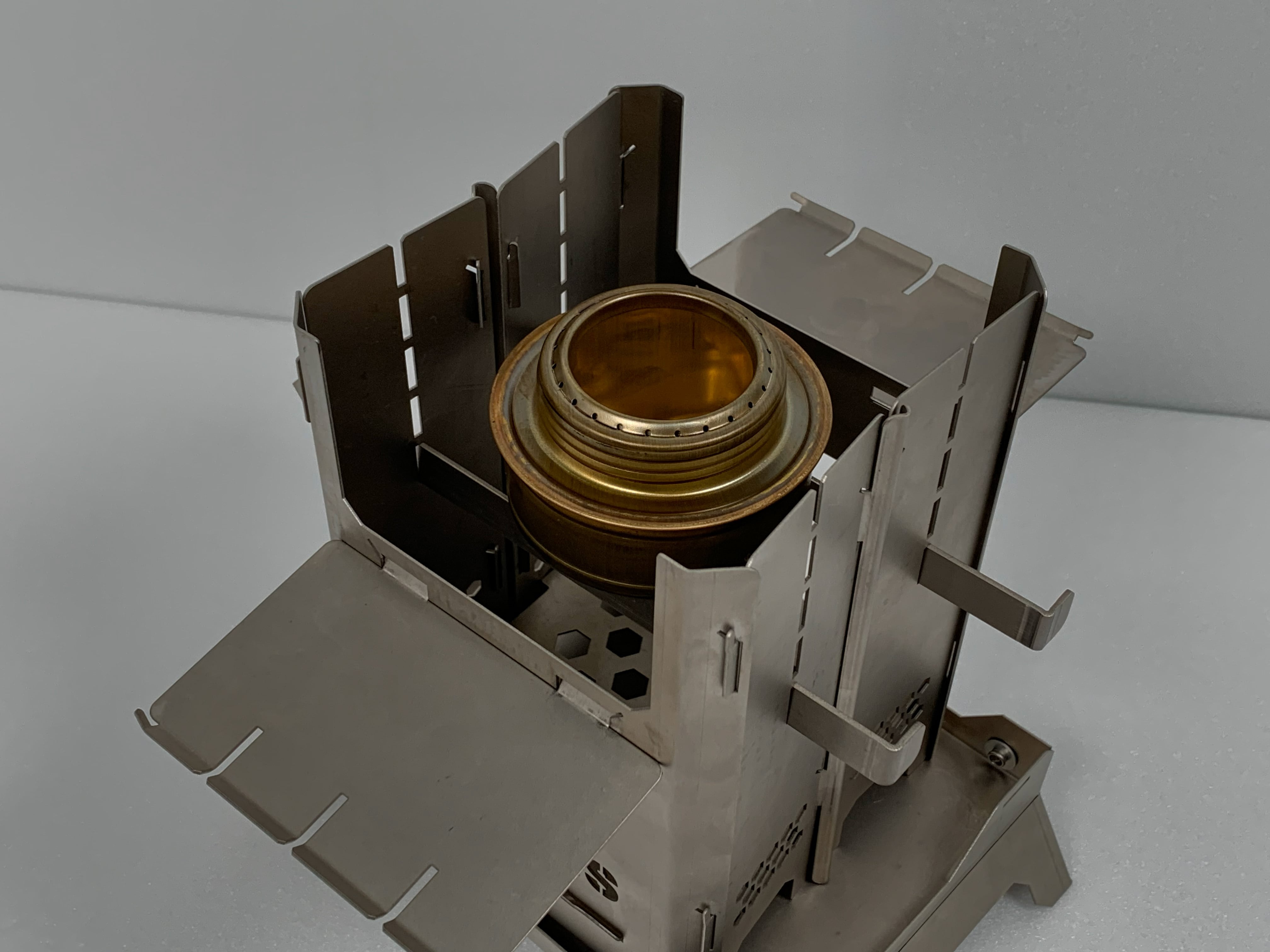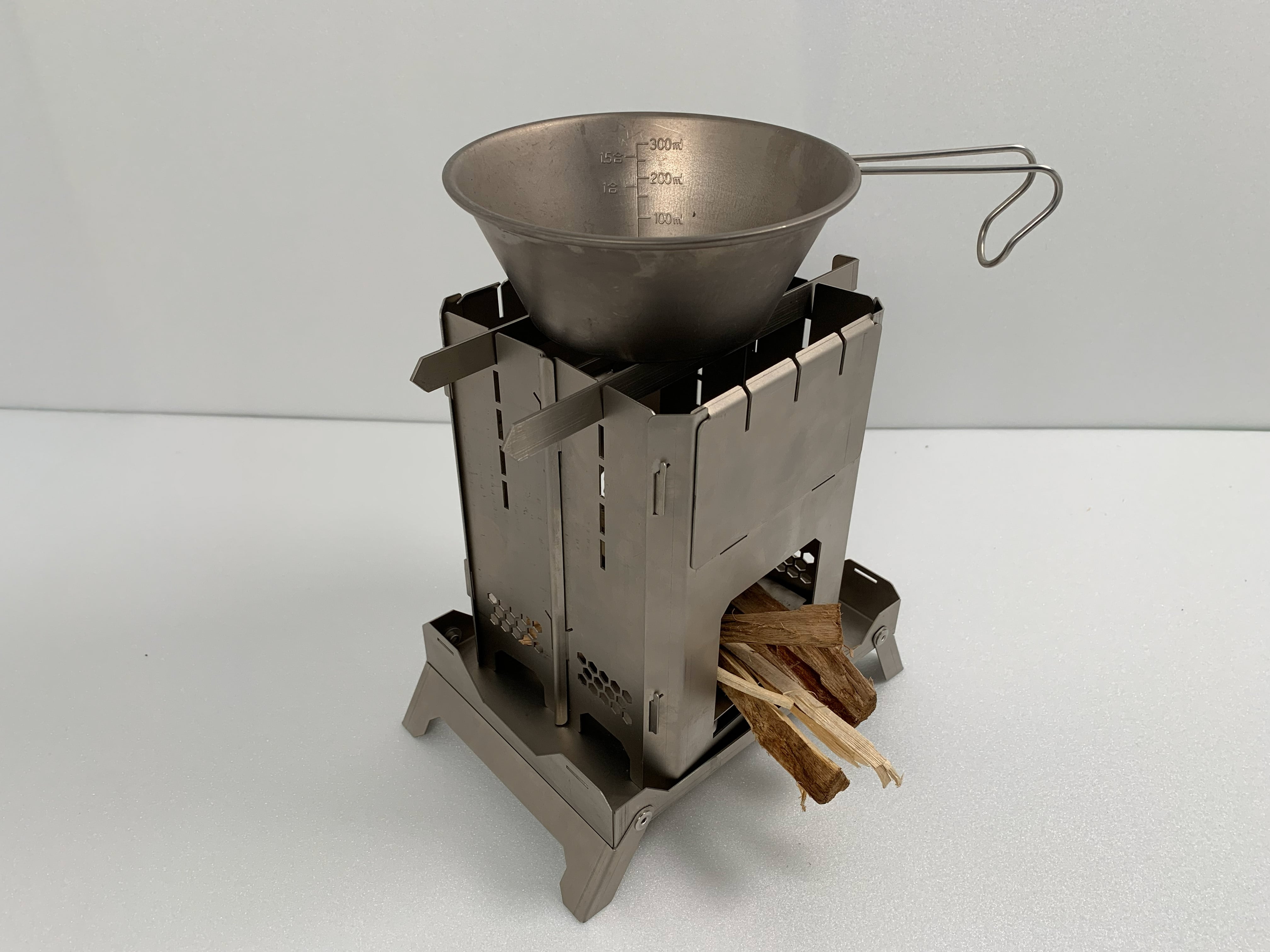 ブッシュクラフト向けチタン製のウッドストーブ。