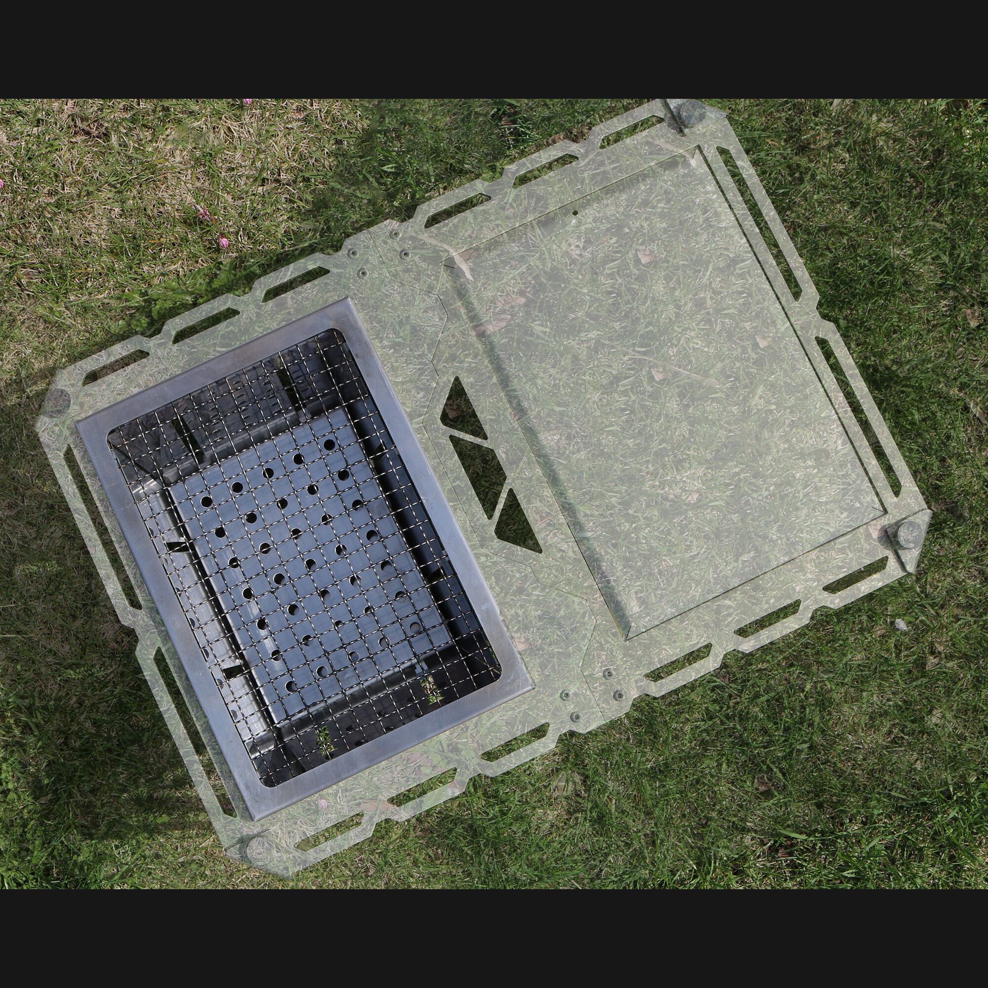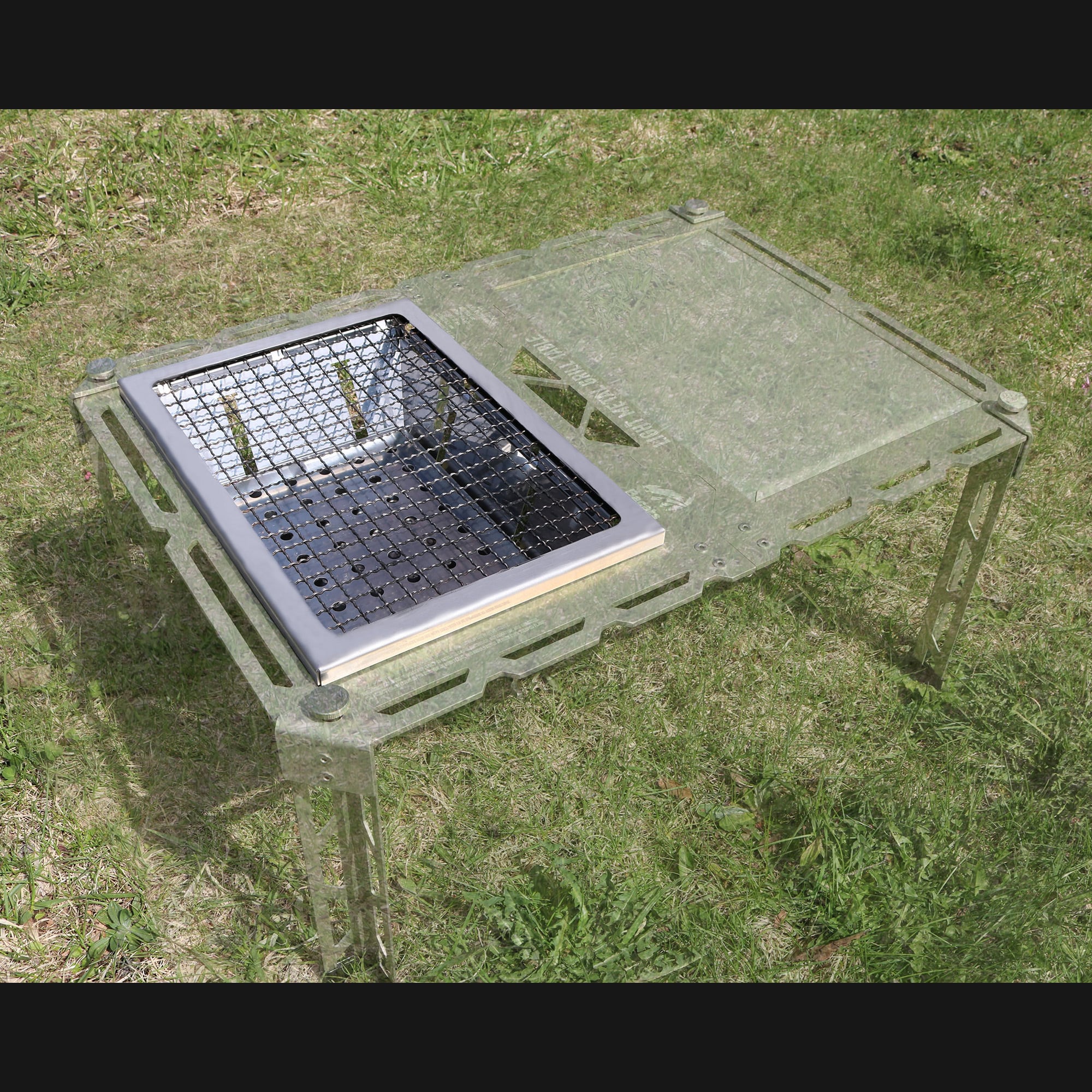 LMGテーブルの開口に収まるグリルと焼き網のセット